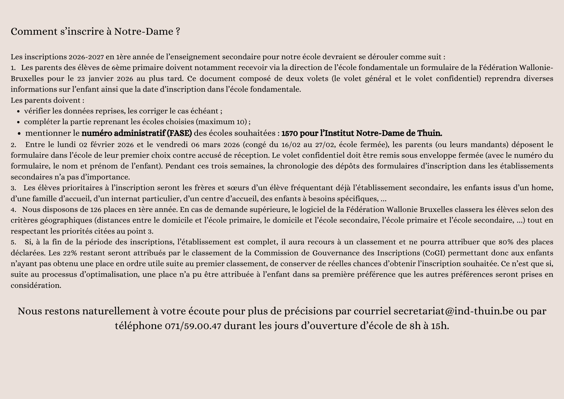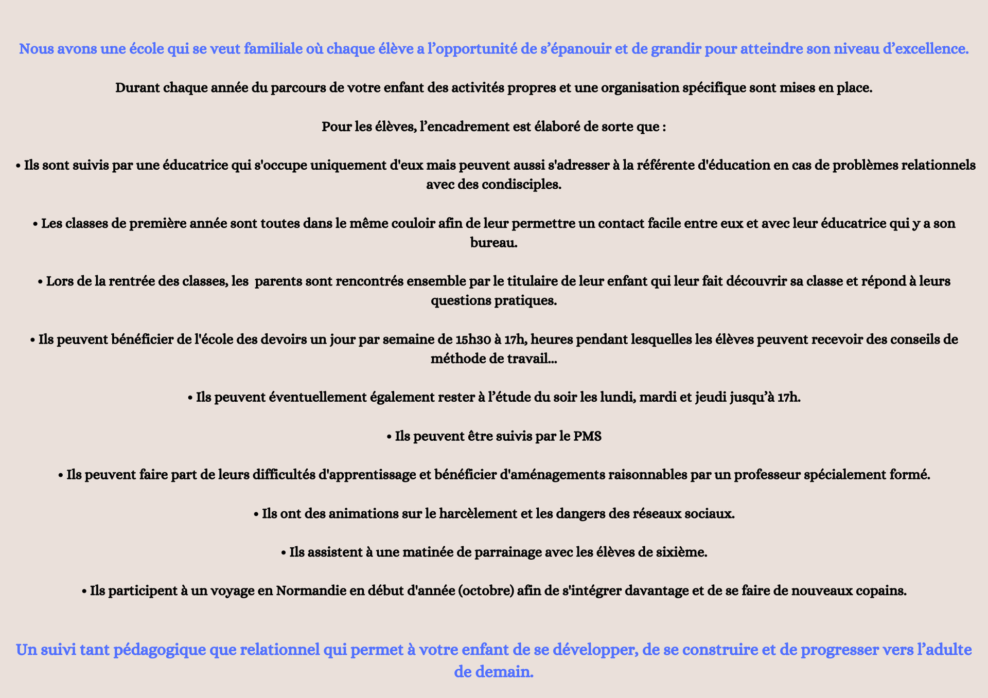 Présentation générale de l'école et des options